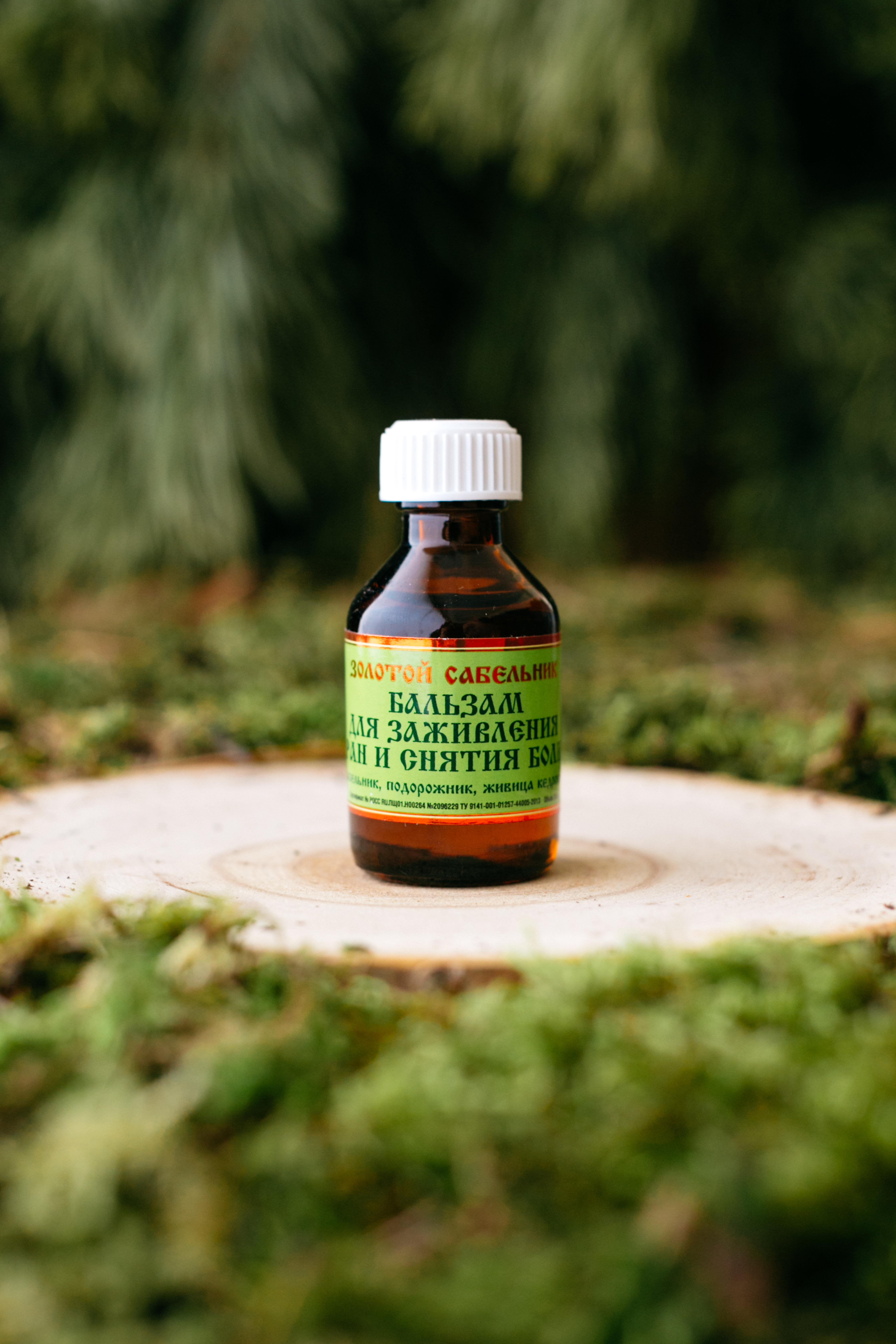 Состав Золотого Сабельника: Живица 40%, масло сабельника болотного, масло подорожника, кедровое эфирное масло.
