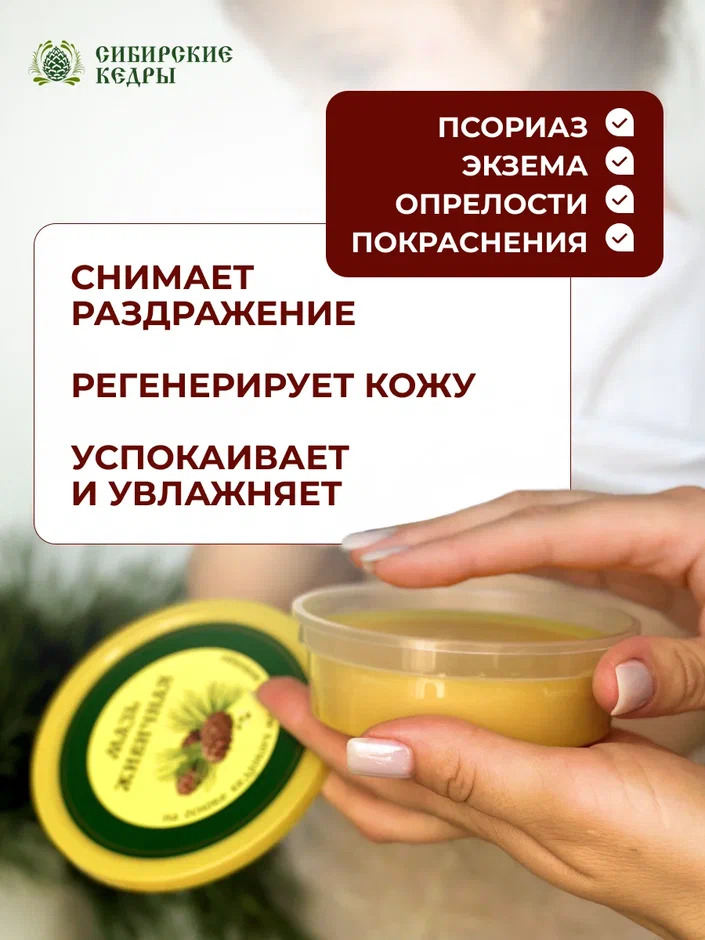 Объем, мл 150 Состав живица (смола) кедра сибирского, собранная с неподсоченных деревьев, масло кедровое холодного отжима, масло топленое, эфирные таежные масла, сабельник - Отгрузка осуществляется со склада в г. Екатеринбург по будням (суббота, воскресенье - выходной) Срок доставки почтой России 8 - 9 дней Срок доставки транспортной компанией СДЭК 5 - 6 дней