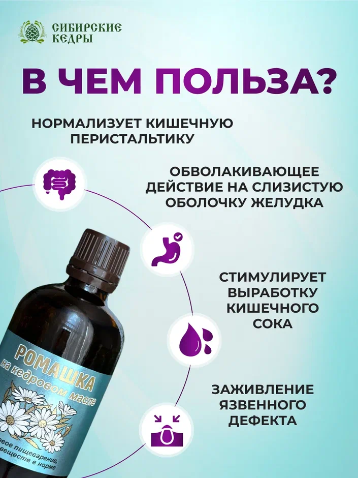 Цвет Фиолетовый Объем, мл 100 Состав масляная вытяжка ромашки аптечной, календулы, пижмы, крапивы, мелиссы, кедровое масло, экстракт овса, плоды шиповника, оливковое масло, живица кедровая 5% - Отгрузка осуществляется со склада в г. Екатеринбург по будням (суббота, воскресенье - выходной) Срок доставки почтой России 8 - 9 дней Срок доставки транспортной компанией СДЭК 5 - 6 дней